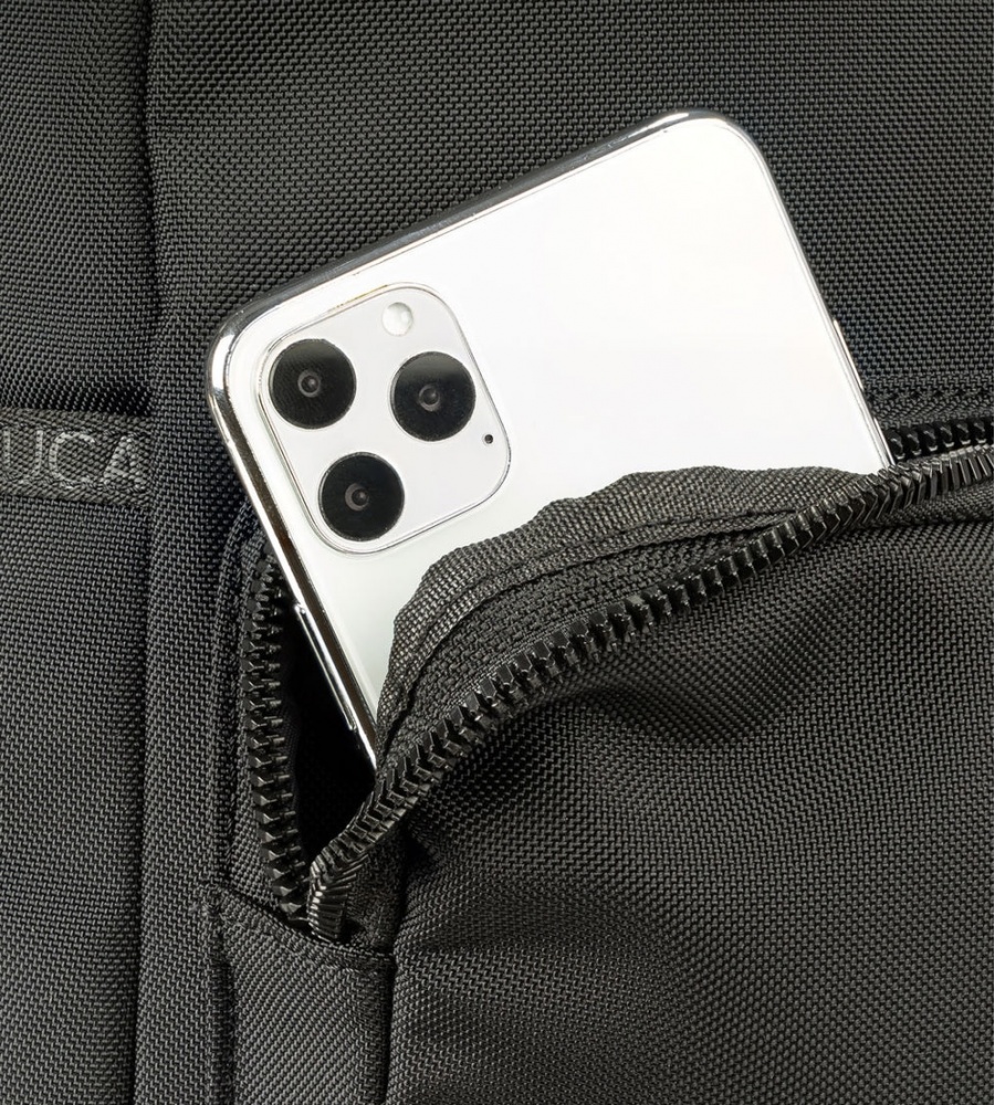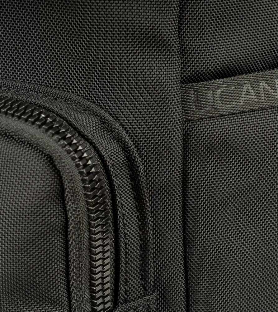 Terras mugursoma ir izgatavota no augstas blīvuma auduma, un tās kabatas ir ļoti labi organizētas: tajā ir divas iekšējās kabatas ar aizsargpolsterējumu planšetdatoriem un klēpjdatoriem, divas ietilpīgas priekšējās kabatas ar atšķirīgu augstumu, kā arī divas sānu kabatas lietussargam un ūdens pudelei.