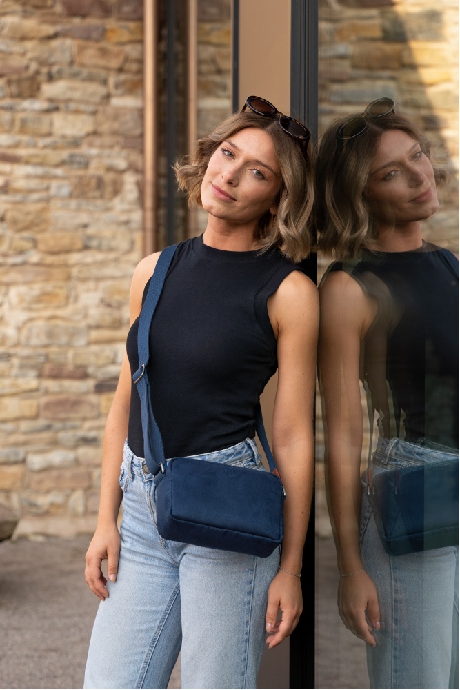 Materiāls: Samtains poliesters, īstas ādas apdare, poliestera un kokvilnas odere.